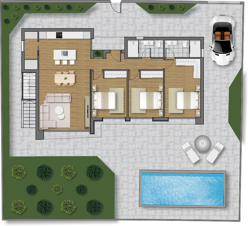 Vivienda con cocina americana. Dispone de dos baños equipados para mayor comodidad. La villa tiene un diseño espacioso y luminoso, con acabados de alta calidad que crea una atmósfera acogedora. Esta propiedad cuenta con una piscina privada, aparcamiento y un amplio jardín con vistas al campo de golf. Además, en el solarium podrá disfrutar de vistas panorámicas de los alrededores.